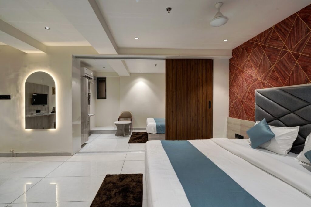 - The Family Room is an excellent choice for guests travelling with loved ones. This unique setup offers interconnected rooms, providing ample space and privacy for families. Enjoy a cosy, homely ambiance with all the modern conveniences at your disposal.